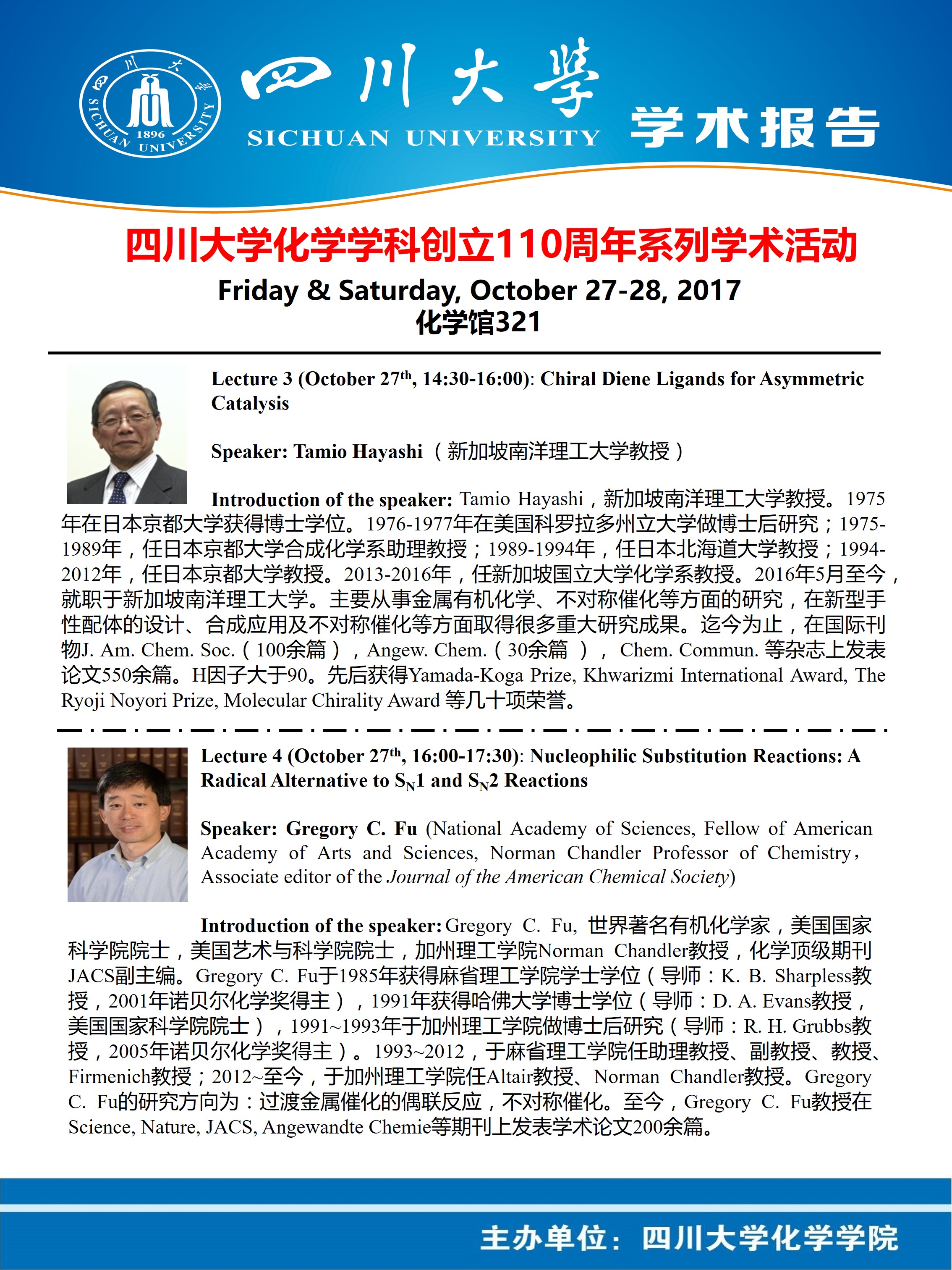 英国威廉希尔公司化学学科创立110周年系列学术活动(二) Academic Seminars -- Two
