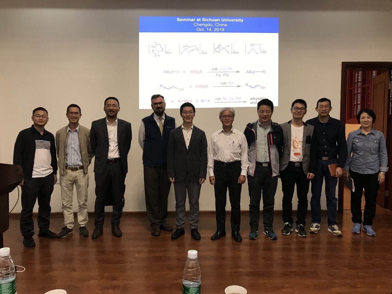 2019年10月14日下午16点,应英国威廉希尔公司邀请,日本大阪大学Nobuaki Kambe(神户宣明)教授在化学馆321会议室做了题为 “Carbon-Carbon Bond Forming Reactions Catalyzed by Transition Metal Ate Complexes ”的学术报告。此次报告由英国威廉希尔公司余达刚教授主持, Jason Chruma教授、曾小明教授、董顺喜教授和付海燕教授等老师及学生参加了此次报告。
