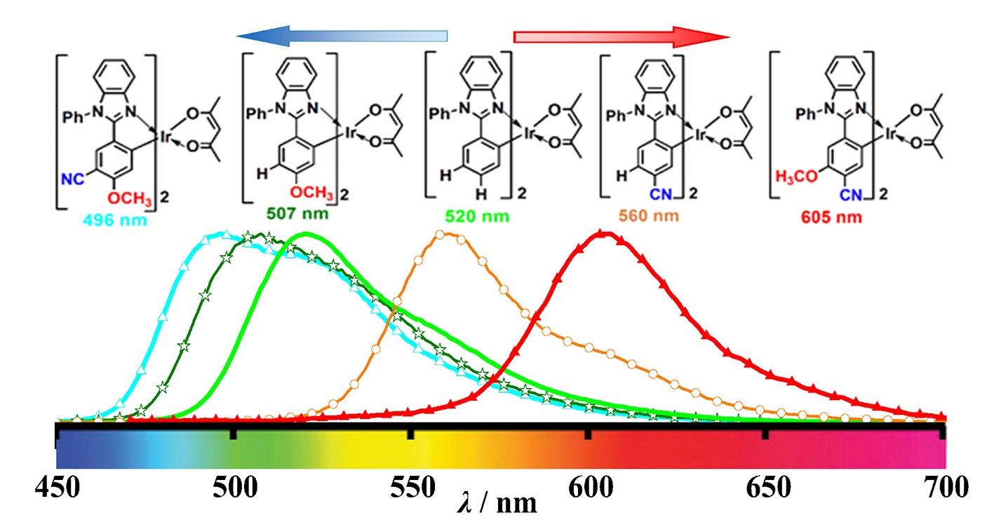 9、Yan Jiao, Ming Li, Ning Wang, Tao Lu, Liang Zhou,* Yan Huang, Zhiyun Lu,* Daibing Luo, Xuemei Pu.* A facile color-tuning strategy for constructing a library of Ir(III) complexes with fine-tuned phosphorescence from bluish green to red using a synergetic substituent effect of –OCH3 and –CN at only the C-ring of C^N ligand, J. Mater. Chem. C, 4, 4269-4277, 2016.