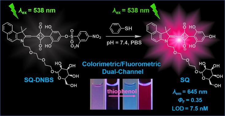 8、Li Xiong, Jun Ma, Yan Huang, Zihe Wang, Zhiyun Lu,* Highly Sensitive Squaraine-Based Water-Soluble Far-Red/Near-Infrared Chromofluorogenic Thiophenol Probe, ACS Sensors, 2, 599-605, 2017.