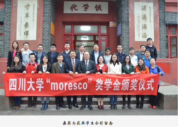 接下来,嘉宾与获奖同学进行了亲切愉快的座谈。获奖学生纷纷表达了对MORESCO公司设置奖学金的由衷感谢,正是因为有了像MORESCO公司这样有社会责任感、有担当的企业,学子们才能更好的完成自己的学业,能够获得此奖学金也是对自己学习工作的肯定和鼓励。同时,学生们也希望自己以后能够在化学领域作出一番成绩,报答母校,回馈社会。获奖学生也与嘉宾们探讨了一些关于学习、就业方面的困惑。最后,到场嘉宾与获奖学生合影留念。