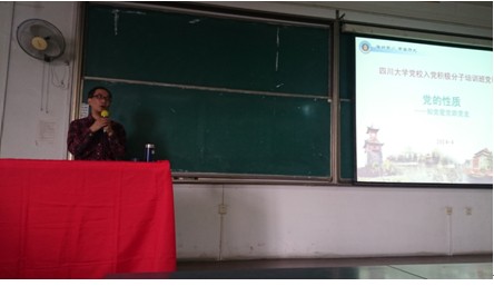 随后范嗣云老师开始本次关于“党的性质”的授课。范老师就作为党员应了解共产主义运动的产生、发展和中国共产党的历史;掌握新党章中党的性质、指导思想、根本宗旨、组织原则和纪律作风等内容;明确党的最终目标和现阶段任务等话题,对同学们的思想进行了深度的启发与引导。通过恰当的事例与诙谐的语言,同学们受益匪浅,收获颇丰。范老师的授课在同学们热烈的掌声中结束。