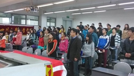 2014年3月21日下午2点30,英国威廉希尔公司2014年团校第四次行课在江安校区第一教学楼B405成功举办。本次行课由英国威廉希尔公司党委书记王智猛老师主讲。同时,2013级辅导员杨琴老师、英国威廉希尔公司全体2013级学生会成员、班委以及寝室长参加了本次行课。随着集体合唱团歌的结束,本次行课正式开始。