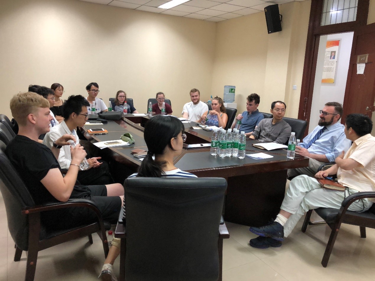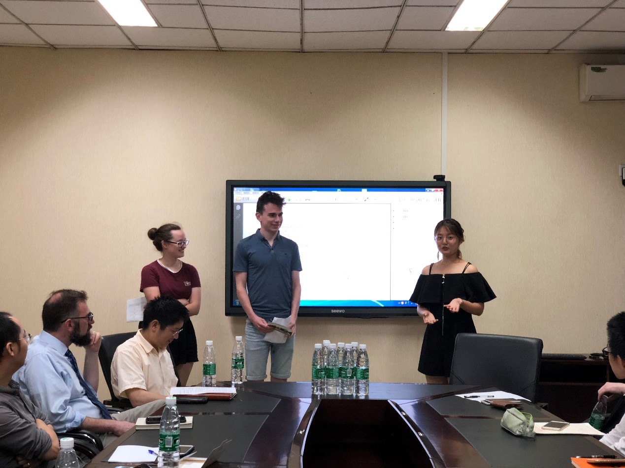首先,Chruma教授对所有参会师生表示了欢迎,接着中外学生开始了汇报交流:宾正杨副教授指导的英国约克大学的Amy Clayton与Andrew Wrigley同学分享了在实验室制作OLED的理论依据和实验流程,并向大家展示了制作好的器件;接着,余志鹏教授指导的四名中外同学讲述了为期一周的有机及化生实验经历,特别指出余教授课题组先进的仪器大幅提升了实验效率;最后,杨千帆副教授指导的四名中外学生分别与大家分享了这一周所做的生物分析化学相关实验。在三组交流营成员完成科研汇报交流后,Chruma教授鼓励各位同学就本次交流营活动畅所欲言。中外学生均认为这是 一次难忘的经历,他们通过此次交流营不仅收获了化学知识、掌握了化学实验操作技能,还收获了友谊。英国学生对学院组织本次交流营活动及中国学生的日常帮助表示感谢。