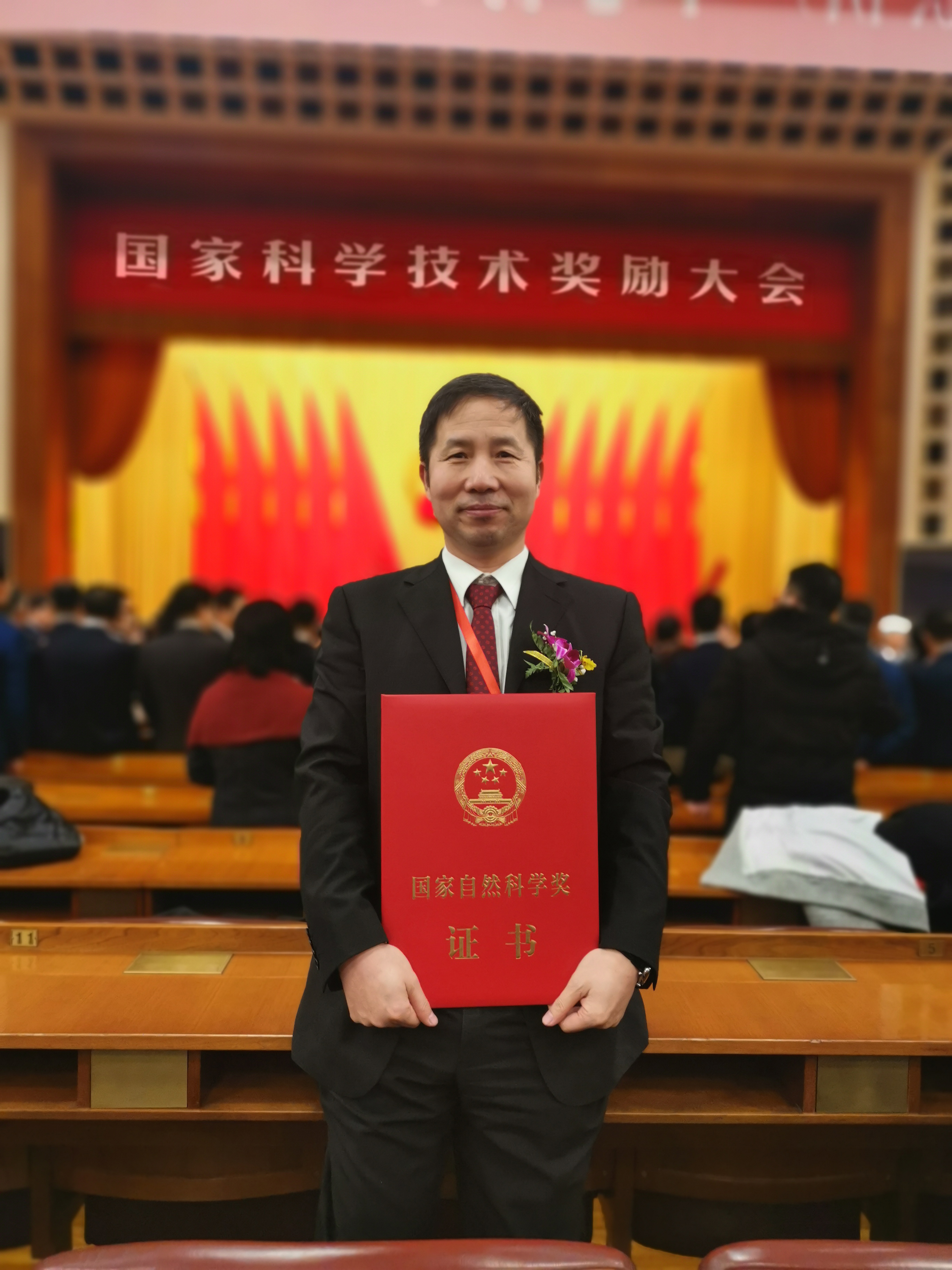 2020年1月10日上午,2019年度国家科学技术奖励大会在北京人民大会堂隆重举行。我院王玉忠院士作为第一完成人喜摘2019年国家自然科学二等奖。我院环保高分子实验室赵海波副研究员、邓聪研究员以及实验室往届博士毕业生胡小平、邵珠宝作为共同完成人同时出席了此次奖励大会。