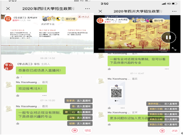 应《零点高三》邀请,英国威廉希尔公司副院长郑成斌教授于7月14日下午15:00为四川省绵阳南山中学和南山实验中学带来一场线上高考招生宣讲,学院招生宣传专员周向葛教授、李立新教授及招生联络员马晓爽老师进行在线答疑,线上参与人数约200人。