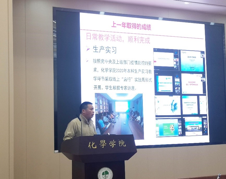 郑成斌副院长强调抓实抓细本科教学,全面提升教育教学水平,致力培养一流化学人才。他梳理了当前学院教学中存在的问题和差距,对标国内一流高校和一流学科,提出学院要坚持以本为本,牢牢抓住全面提高人才培养能力这个核心点,落实好培养德智体美劳全面发展的社会主义建设者和接班人这一根本任务,凝心聚力,面向未来,办好学院的本科教育。