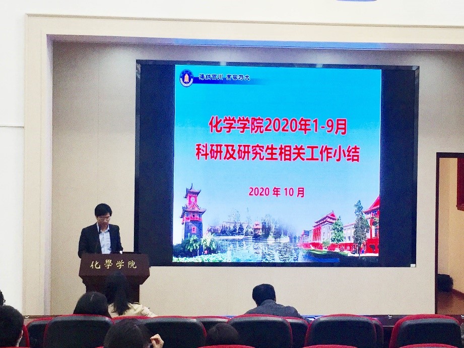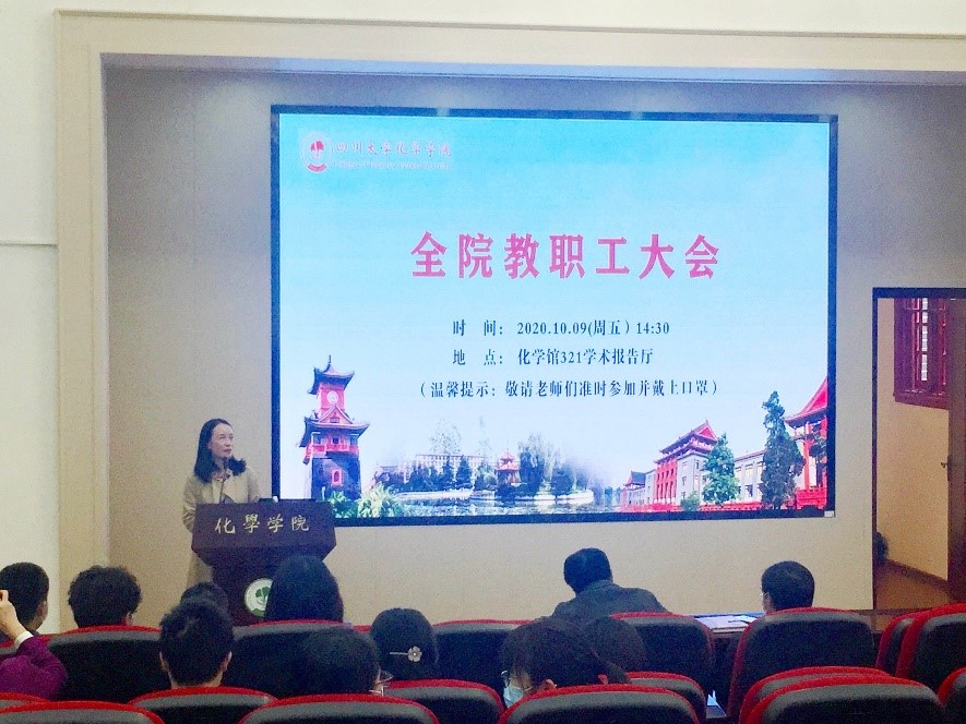 2020年10月9日下午,在化学馆321报告厅召开了英国威廉希尔公司全院教职工大会,总结上半年学院工作,对本学期的教学、科研、管理等相关工作进行了研讨。会议由学院党委书记谢均主持。