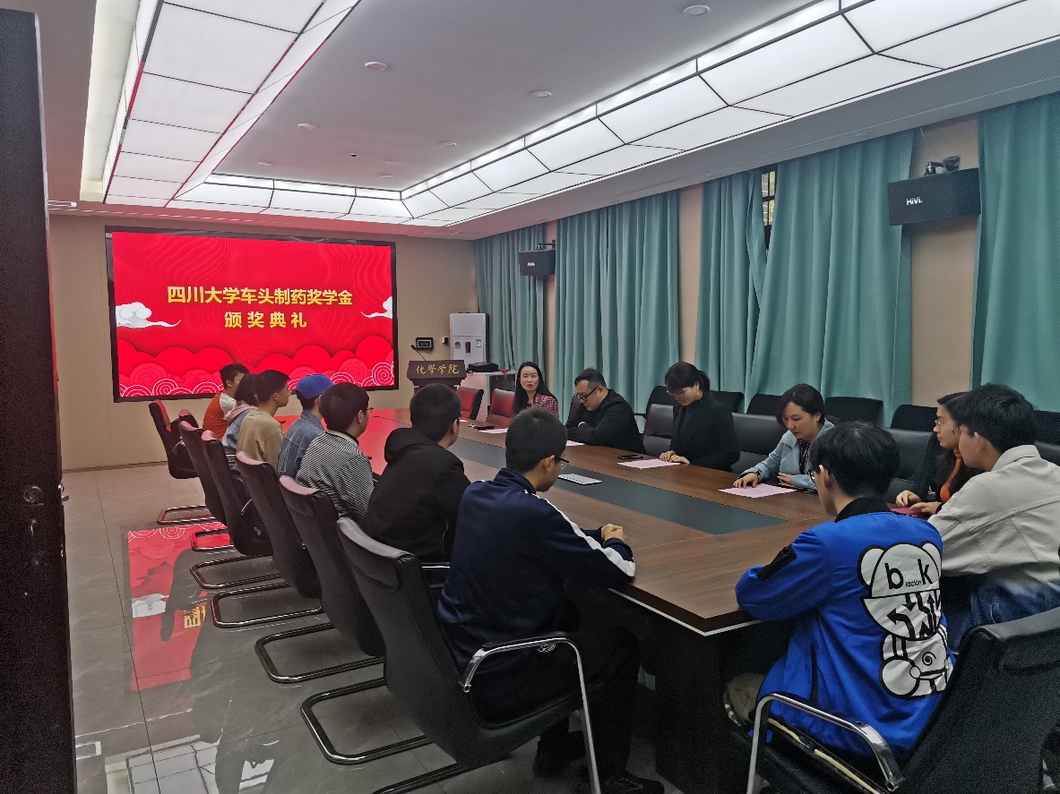 首先,谢均书记介绍到场嘉宾并致欢迎辞,对车头制药集团表示感谢,对获得奖学金的同学们表示祝贺。随后,徐建江先生向同学们讲述了设立车头制药奖学金的初心,并以浙江省和江苏省为例介绍了企业行业发展现状以及相关人才支持政策,同时结合当前时事引导同学们理性爱国,将家国情怀内化于心、外化于行,珍惜时间,不断奋斗。郑小艳女士宣布获奖学生名单,到会嘉宾为获奖同学们颁奖。