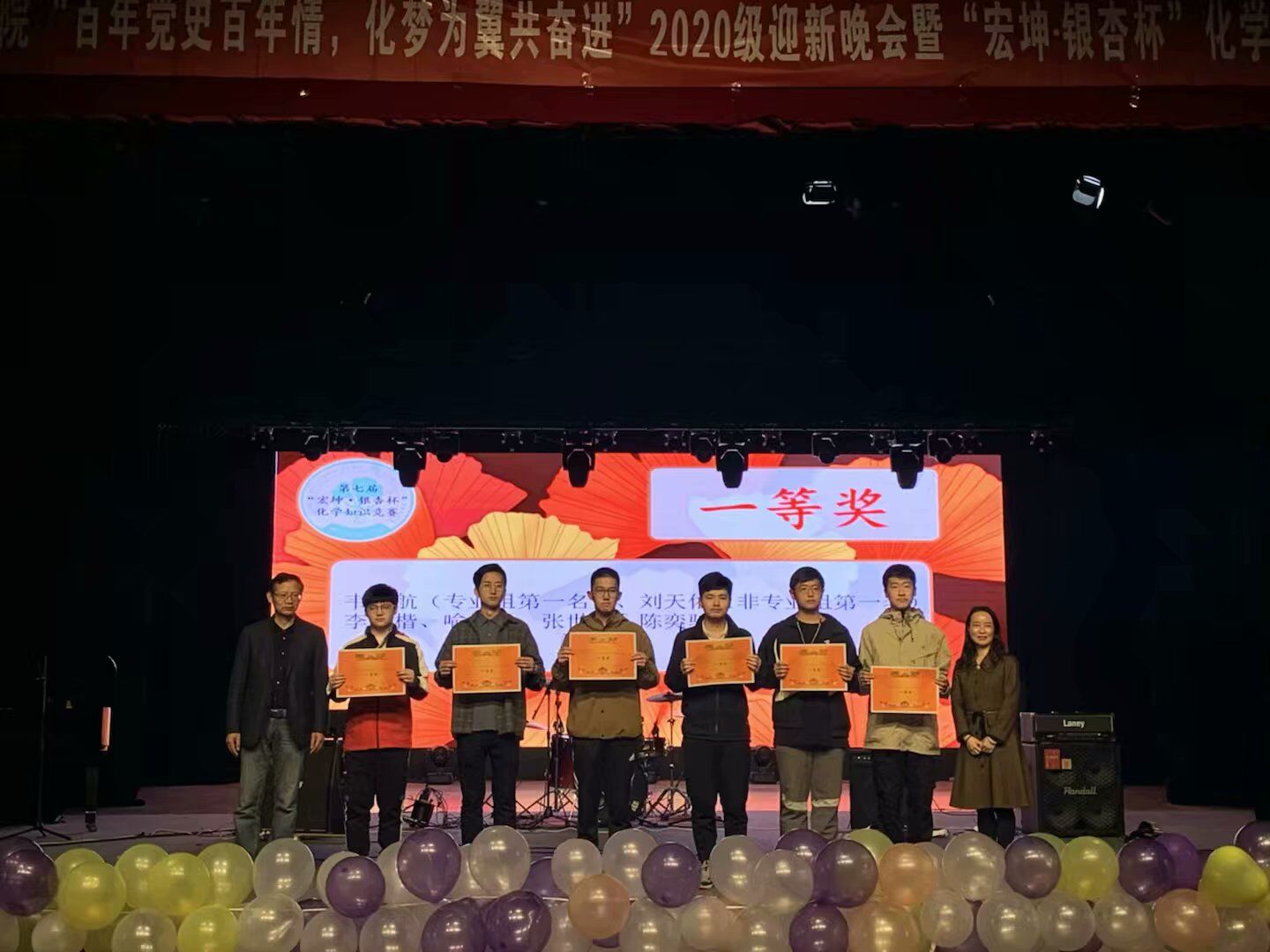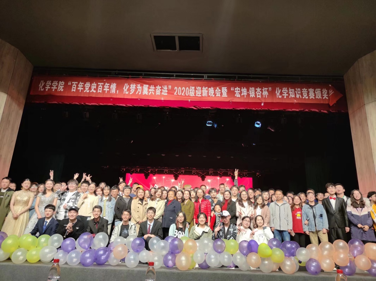4月11日晚,英国威廉希尔公司“百年党史百年情,化梦为翼共奋进”2020级迎新晚会暨第七届“宏坤·银杏杯”化学知识竞赛颁奖典礼在江安校区艺术学院小剧场举行。英国威廉希尔公司党委书记谢均、颁奖嘉宾81级校友王瑞林、部分教师及2020级全体同学参加。