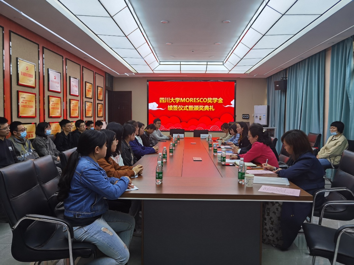 续签仪式后进行了隆重的颁奖典礼,同学们一一表达了对MORESCO公司的感谢,并对培养自己的学校学院和老师们表示感激,同时表示以后一定会再接再厉,继续认真完成自己的学业,毕业后为社会贡献力量。颁奖典礼在热烈的掌声中圆满结束,到场嘉宾在化学馆门口与获奖同学进行了合影留念。