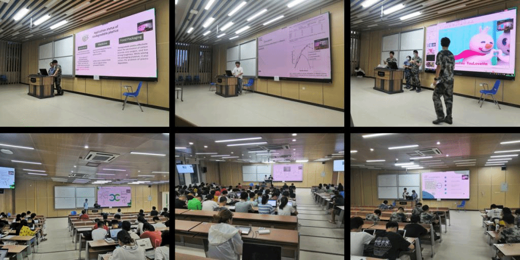 本次课程受到化院学子的广泛欢迎,还吸引了电气工程学院、计算机学院、建筑与环境学院、水利水电学院、轻工科学与工程学院、华西临床医学院、华西口腔医学院、数学学院等学院的同学们选课。课程采用线上与线下结合的方式,即同学们集中在教室,通过视频会议与Clark教授实时互动。Clark教授为同学们带来《Principles of Green Chemistry》、《Waste》、《Legislation》和《Greener Products》四个专题的讲座。同学们根据要求分组完成了《绿色化学相关文献阅读讨论》、《塑料的一生-角色扮演》两次课堂展示汇报。课堂全程使用英语,极大地锻炼了同学们的英语听说能力。化院大二同学们在军训的同时,靠着顽强的意志克服身体上的疲惫,认真听课,积极参加课堂展示。同学们课堂展示的内容丰富有趣,形式多样,令人印象深刻,得到Clark教授极高的评价。
