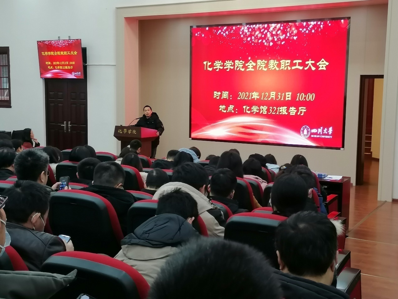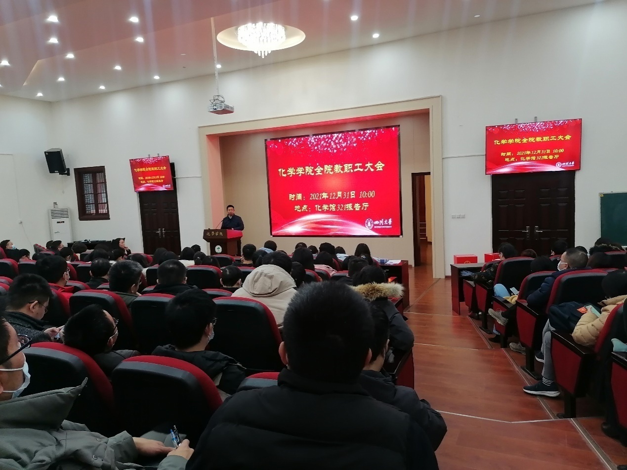 2021年12月31日上午,英国威廉希尔公司2021年度全院教职工大会在化学馆321报告厅召开。会议由学院党委书记谢均主持。
