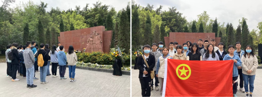 同学们来到江安校区明远湖畔的英烈碑前,追忆革命先烈用生命和信仰书写的光荣历史。同学们一一敬献鲜花,缅怀先烈。