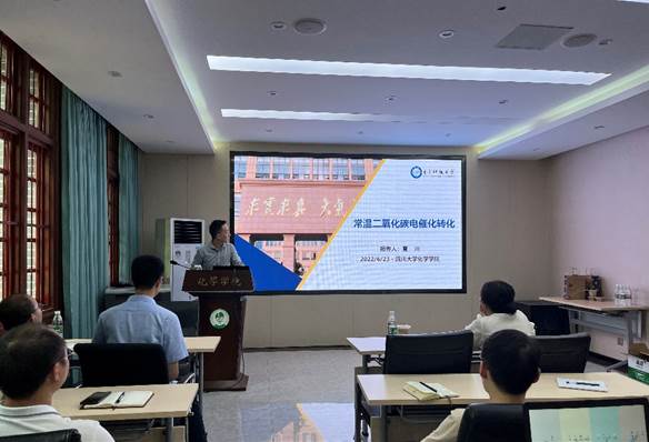 2022年6月23日下午15:00,电子科技大学夏川教授应邀来我院访问,并在化学馆121报告厅做了题为“常温二氧化碳电催化转化”的学术报告。我院张帆教授主持报告会,学院部分老师及学生参加了此次报告。