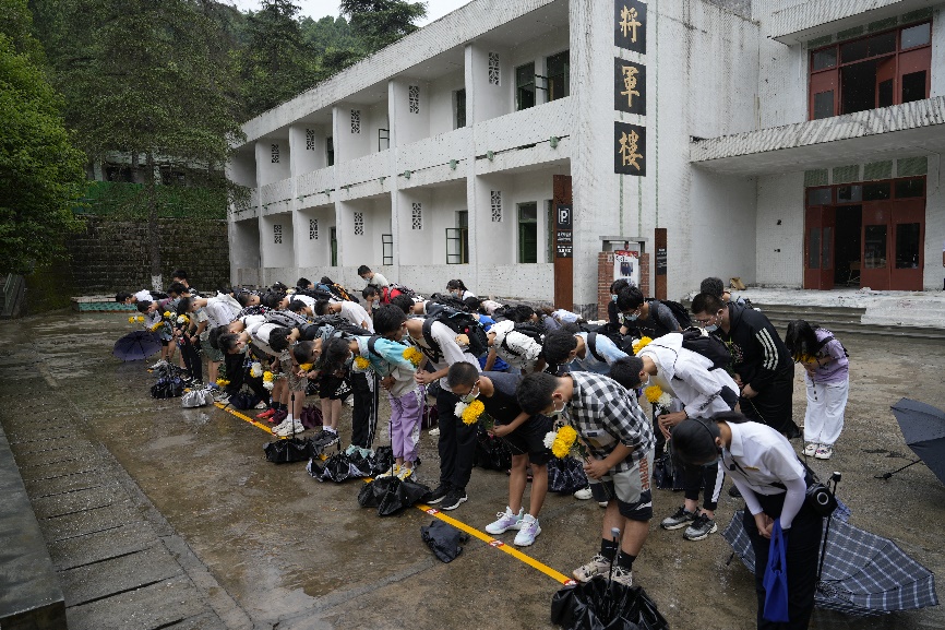 随后,同学们为邓稼先院长进行了献花,激励同学们传承和弘扬革命家的家国情怀和奉献精神。