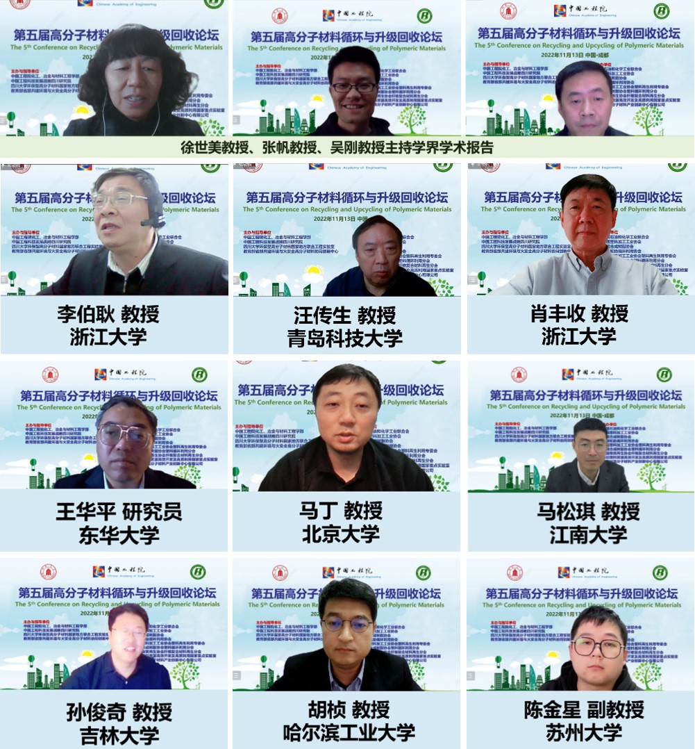 2022年11月13日,在中国工程院化工、冶金与材料工程学部的大力支持下,由我院环保型高分子材料国家地方联合工程实验室发起并具体承办一年一届的“高分子材料循环与升级回收论坛”第五届会议成功召开,按照疫情防控要求采取线上会议。该论坛已成为中国工程院化工、冶金与材料工程学部的品牌会议之一,本次会议王玉忠院士为大会主席,汪秀丽教授为执行主席。中国工程院化工、冶金与材料学部主任谭天伟院士、英国威廉希尔公司校长李言荣院士分别在开幕式上致辞。