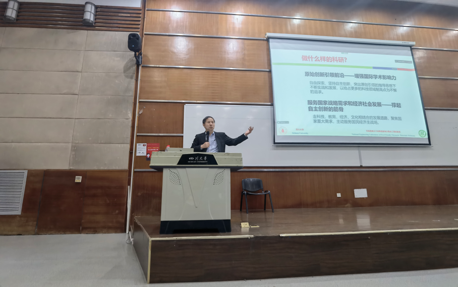 随后,王玉忠院士具体介绍了环保型高分子材料国家地方联合工程实验室的主要研究方向。王院士结合自身的科研经历,再次向同学们强调了选择和奋斗的重要性。最后,王院士寄语在座同学,“四年后成为一名优秀的川大毕业生”,“从优秀走向卓越”。在提问环节,王玉忠院士热心回答了同学们提出的问题。
