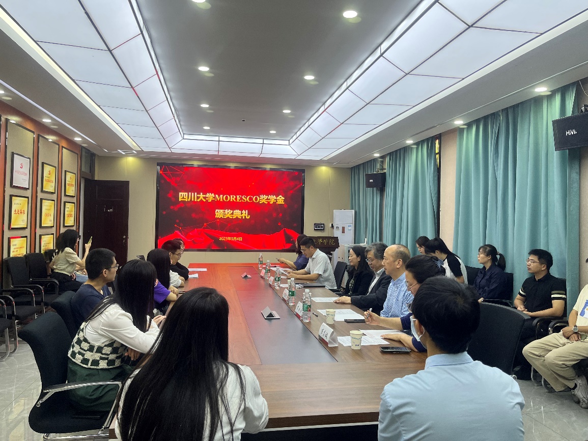 夏初俄先生宣读了获奖学生名单。学生代表许海萍和刘旻昊表达了对MORESCO公司的感谢,并对培养自己的学校、学院和老师们表示感激,同时表示以后一定会再接再厉,继续认真完成自己的学业,毕业后为社会贡献力量,颁奖典礼在热烈的掌声中圆满结束。