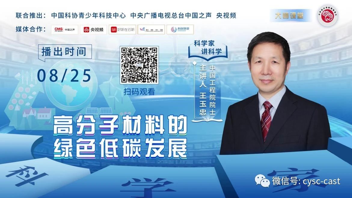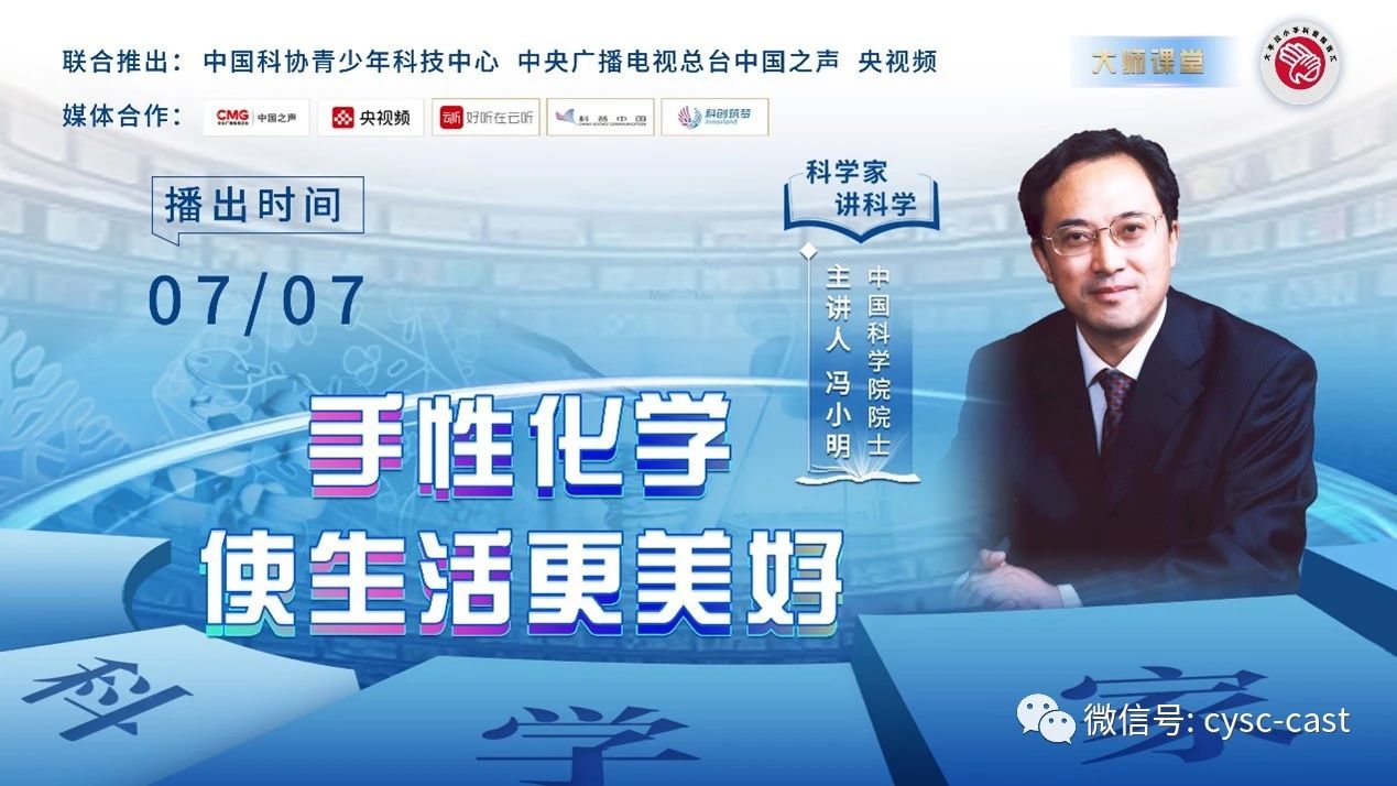 中国科协青少年科技中心携手中央广播电视总台中国之声、央视频,推出2023《科学家讲科学》科普栏目,听院士名家畅谈科技热点,共享奇妙科普旅程。我院冯小明院士《手性化学使生活更美好》和王玉忠院士《高分子材料的绿色低碳发展》分别在第六期和第十三期播出。