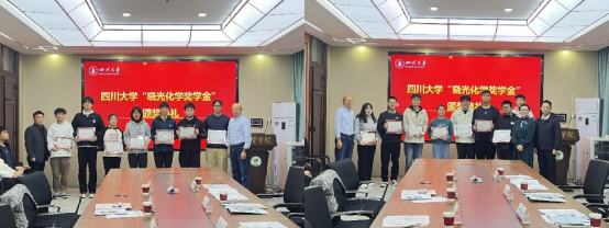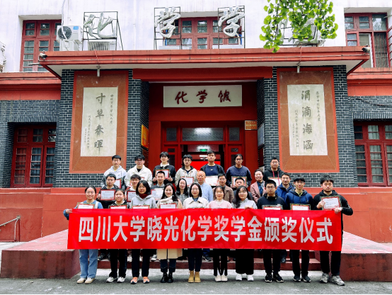 刘波院长向获奖同学表示祝贺并宣读获奖学生名单。同学们纷纷发表获奖感言,由衷地感谢晓光先生的关心与帮助,以及老师们的栽培,并表示将继续努力奋进,投身于基础科学研究。颁奖仪式结束后,到场嘉宾在化学馆门口与获奖同学进行了合影留念。