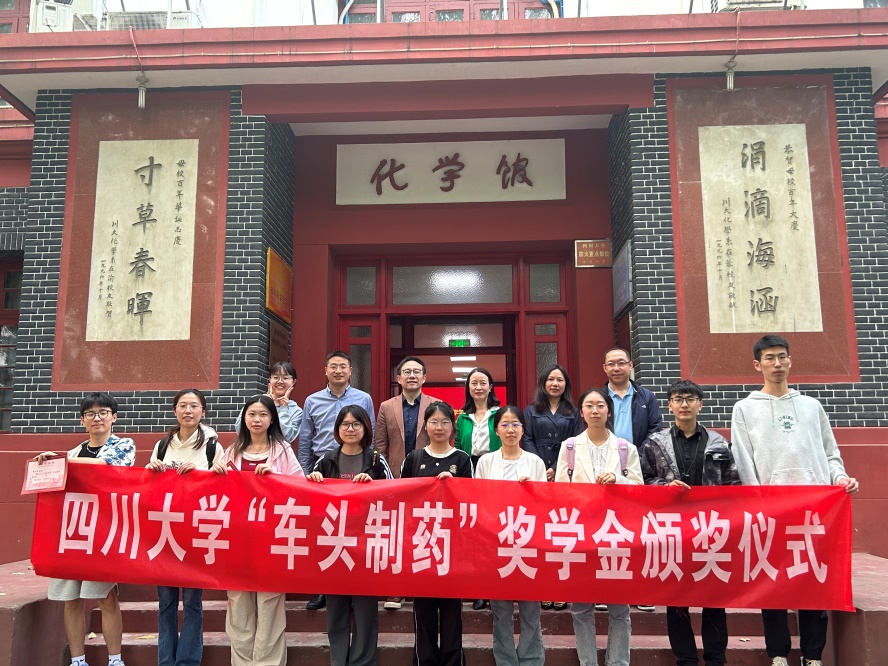 颁奖仪式结束后,与会嘉宾与同学们在化学馆门前合影留念。