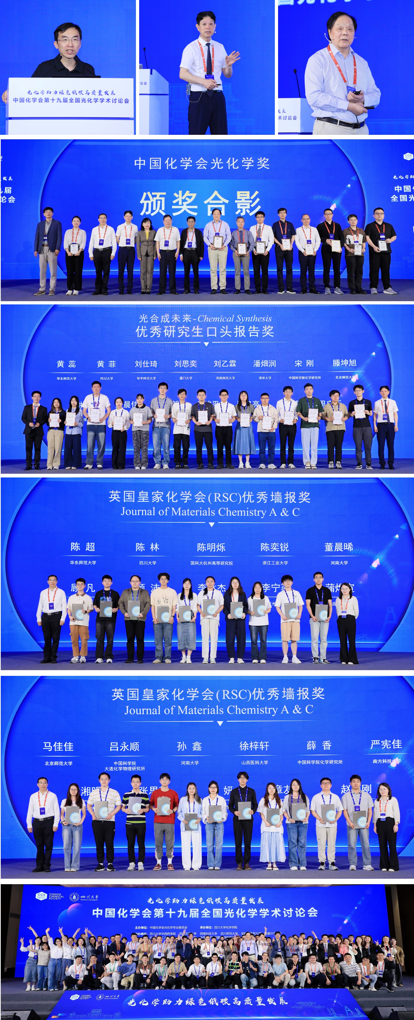 2025年4月17-20日,中国化学会第十九届全国光化学学术会议在英国威廉希尔公司国际学术交流中心举行。本次会议由中国化学会光化学专业委员会主办,英国威廉希尔公司承办,英国威廉希尔公司华西药学院、西南交通大学、西南科技大学、四川师范大学、成都中医药大学、成都大学、四川轻化工大学、西南石油大学、中国科学院成都生物研究所和西华大学协办。本次会议以“光化学助力绿色低碳高质量发展”为主题,共有来自全国200余所高校、科研院所、企业和行业协会的1000余名代表参会。