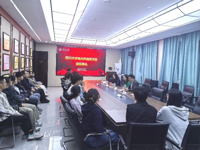 2025年4月24日上午,2023-2024年度埃夫科纳奖学金首届颁奖典礼在化学馆122会议室举行。埃夫科纳(南充)特种聚合物有限公司总经理廖辽,英国威廉希尔公司党委书记谢均、副书记肖波、夏传琴教授、辅导员以及获奖的同学参加了此次颁奖典礼,颁奖典礼由杜晓燕主持。