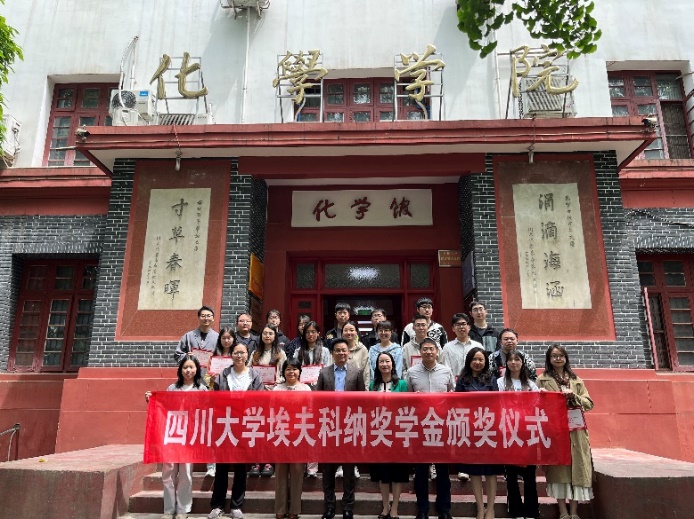 颁奖仪式结束后,与会嘉宾与同学们在化学馆门前合影留念。