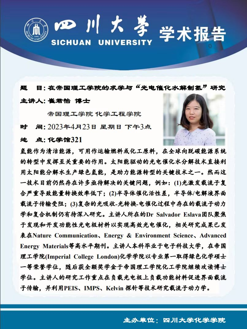 在帝国理工学院的求学与“光电催化水解制氢”研究