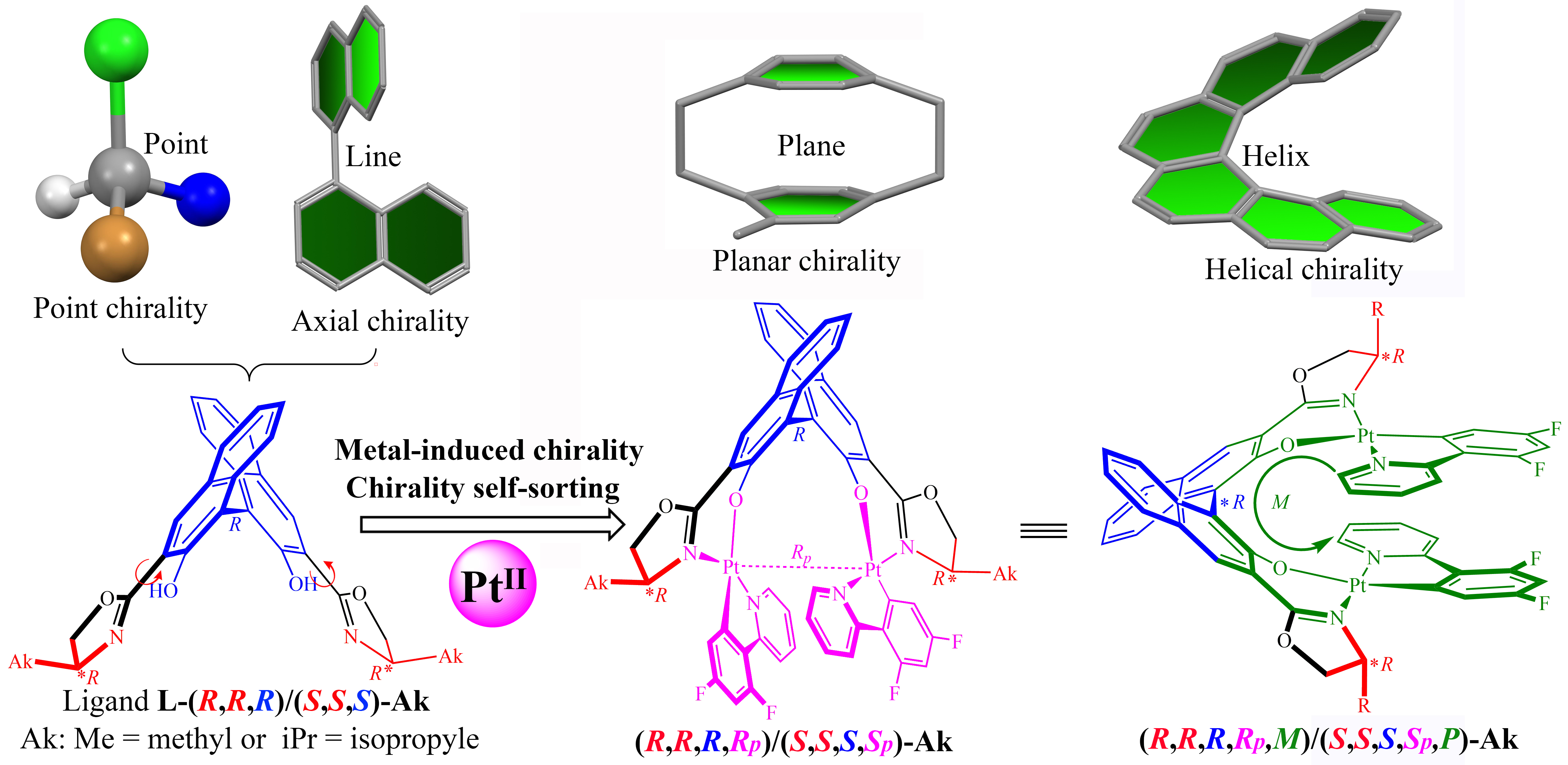 2. 基于软桥联配体的面手性双核Pt(II)配合物:J. T. Song,* H. Xiao, B. Zhang, L. Qu, X. G. Zhou, P. Hu, Z. X. Xu,* H. F. Xiang,* “Metal-induced planar chirality of soft-bridged binuclear platinum(II) complexes: 100% phosphorescence quantum yields, chiral self-sorting, and circularly polarized luminescence”, Angew. Chem. Int. Ed. 2023, 62, e202302011.