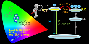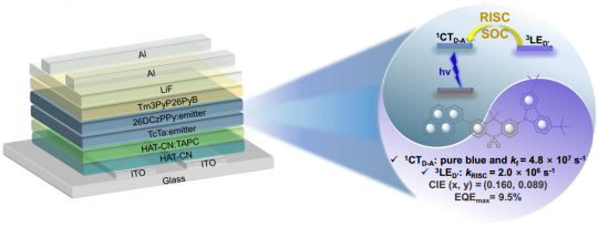 4. 构建出了首例具有紫外发射能力的热激活延迟荧光电致发光材料