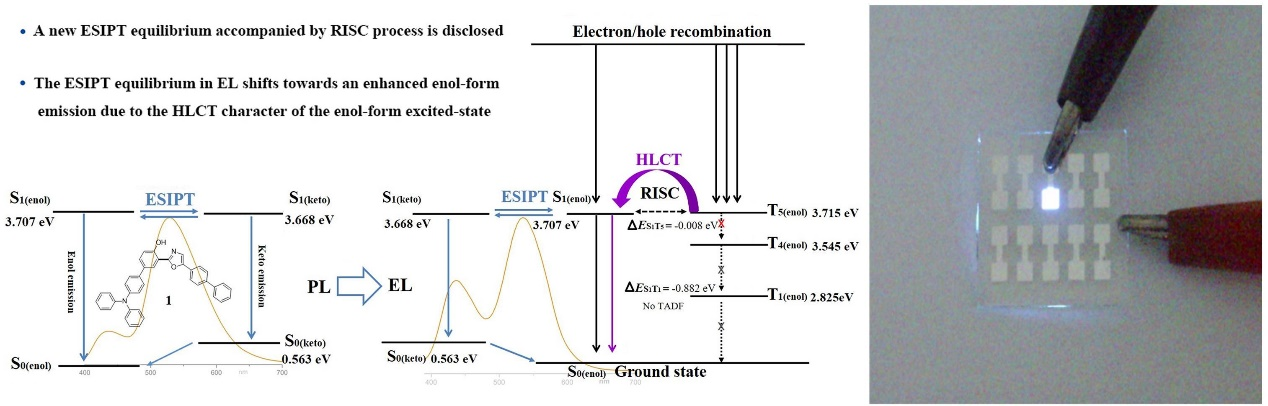 31) Bijin Li, Linsen Zhou, Hu Cheng, Quan Huang, Jingbo Lan,* Liang Zhou,* Jingsong You.* Dual-emissive 2-(2’-hydroxyphenyl)oxazoles for high performance organic electroluminescent devices: discovery of a new equilibrium of excited state intramolecular proton transfer with a reverse intersystem crossing process. Chem. Sci. 2018, 9, 1213–1220.