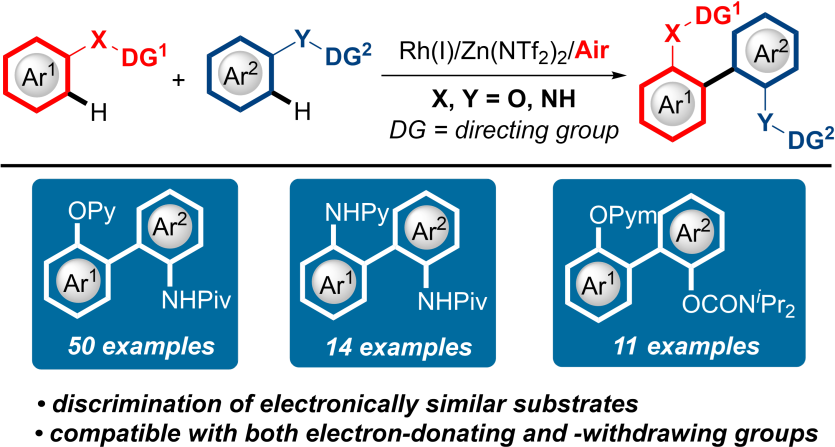 27) Luoqiang Zhang, Yanbing Wang, Yang Shi, Yimin Wu, Jingbo Lan,* Weixin Ma, Jingsong You.* Highly regio- and chemoselective oxidative C−H/C−H cross-couplings of anilines and phenols enabled by a co-oxidant-free Rh(I)/Zn(NTf2)2/air catalytic system. ACS Catal. 2019, 9, 5358−5364.
