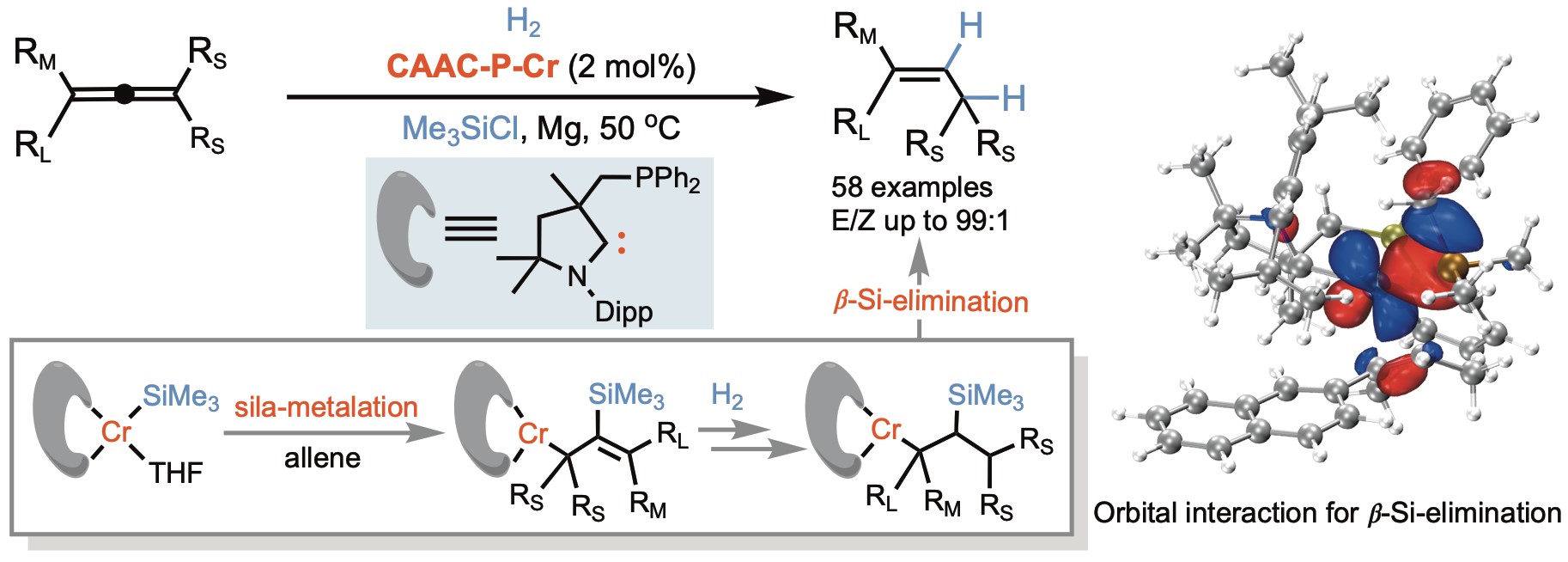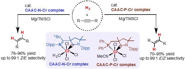 Chromium-catalyzed stereodivergent E- and Z-selective alkyne hydrogenation controlled by cyclic (alkyl)(amino)carbene ligands