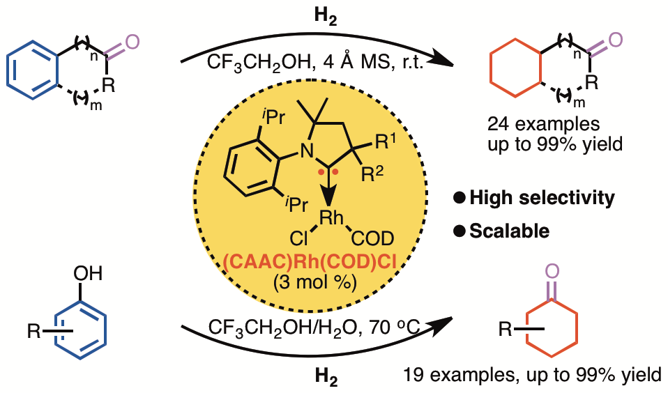 Highly Selective Hydrogenation of Aromatic Ketones and Phenols Enabled by Cyclic (Amino)(alkyl)carbene Rhodium Complexes