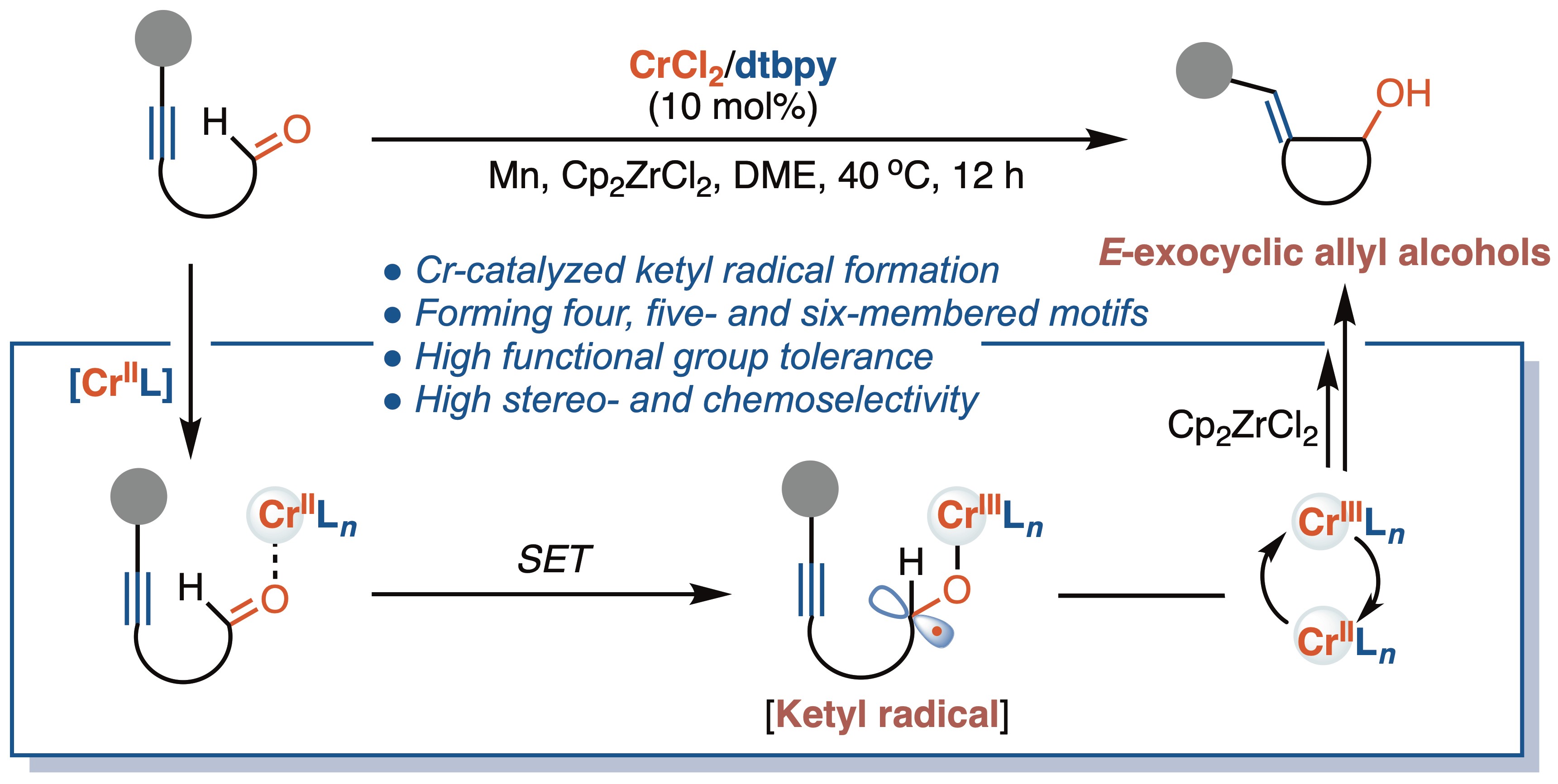 Mild ketyl radical generation and coupling with alkynes enabled by Cr catalysis: stereoselective access to E-exocyclic allyl alcohols