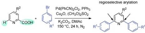50. Ma, Z.; Liu, H.; Zhang, C.; Zheng, X.; Yuan, M.; Fu, H. *; Li, R.; Chen, H. *, One-Pot Synthesis of Symmetrical 2,6-Diarylpyridines via Palladium/Copper-Catalyzed Sequential Decarboxylative and Direct C-H Arylation. Adv. Syn. & Catal. 2015, 357 (6), 1143-1148.