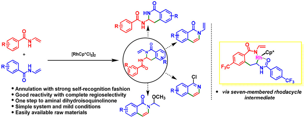 42. Sun, R.; Yang, X.; Chen, X.; Zhang, C.; Zhao, X.; Wang, X.; Zheng, X.; Yuan, M.; Fu, H.*; Li, R.; Chen, H.*, Rh(III)-Catalyzed [4 + 2] Self-Annulation of N-Vinylarylamides. Org. Lett. 2018. 20(21): p. 6755-6759.