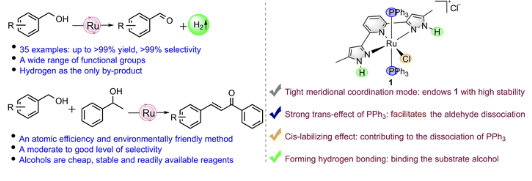 12. Chen, Y.; Cui, T.; Chen, H.;Zheng, X.; Fu, H.*; Li, R.*, Pyrazole–pyridine–pyrazole (NNN) ruthenium(ii) complex catalyzed acceptorless dehydrogenation of alcohols to aldehydes. Dalton Transactions 2023, 52 (35), 12368-12377.