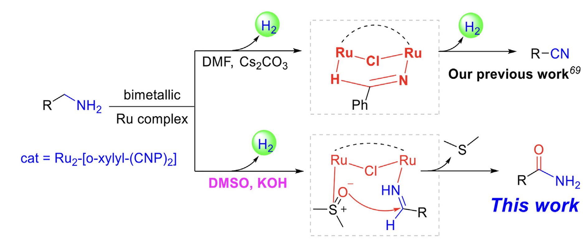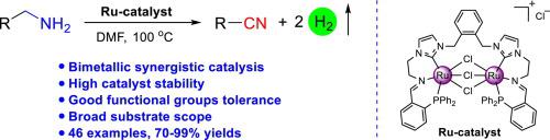 31. Nie, X.; Zheng, Y.; Ji, L.; Fu, H.*; Chen, H.; Li, R.*, Acceptorless dehydrogenation of amines to nitriles catalyzed by N-heterocyclic carbene-nitrogen-phosphine chelated bimetallic ruthenium (II) complex. J. Catal. 2020, 391, 378-385;