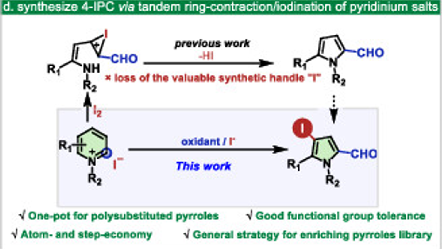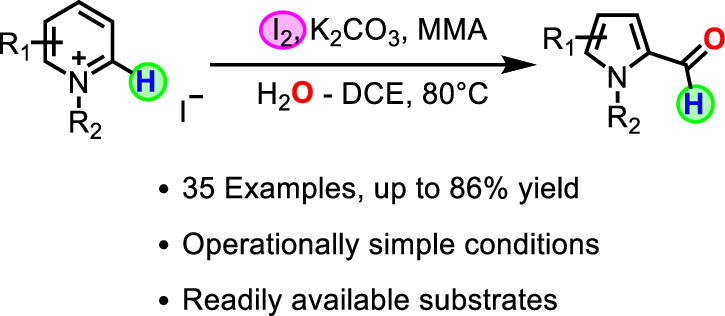 33. Xu, K.; Li, W.; Sun, R.; Luo, L.; Chen, X.; Zhang, C.; Zheng, X.; Yuan, M.; Fu, H. *; Li, R.; Chen, H., Synthesis of 2-Formylpyrroles from Pyridinium Iodide Salts. Org.Lett. 2020, 22 (15), 6107-6111;