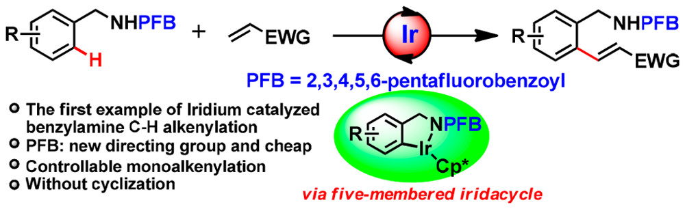 38. Yang, X.; Sun, R.; Zhang, C.; Zheng, X.*; Yuan, M.; Fu, H.*; Li, R.; Chen, H., Iridium-Catalyzed Benzylamine C-H Alkenylation Enabled by Pentafluorobenzoyl as the Directing Group. Org Lett, 2019. 21(4): p. 1002-1006.