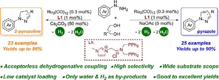 22. Zheng, Y.; Long, Y.; Gong, H.; Xu, J.; Zhang, C.; Fu, H.*; Zheng, X.; Chen, H.; Li, R.*, Ruthenium-Catalyzed Divergent Acceptorless Dehydrogenative Coupling of 1,3-Diols with Arylhydrazines: Synthesis of Pyrazoles and 2-Pyrazolines. Org. Lett. 2022, 24 (21), 3878-3883