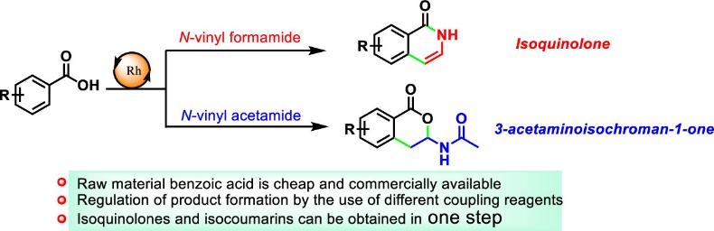41. Sun, R.; Yang, X.; Li,Q.; Xu,Ke.; Tang,J.; Zheng,X.; Yuan,M.; Fu, H.*; Li, R.; Chen, H.*, Divergent Synthesis of Isoquinolone and Isocoumarin Derivatives by the Annulation of Benzoic Acid with N-Vinyl Amide Org. Lett. 2019, 21, 23, 9425–9429. .https://pubs.acs.org/doi/10.1021/acs.orglett.9b03638