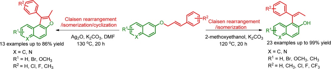 49. Wang, W.; Huang, J.; Zhou, R.; Jiang, Z.-J.; Fu, H.-Y. *; Zheng, X.-L.; Chen, H.; Li, R.-X.*, A Simple and Efficient Access to Naphtho[b]furans by Claisen Rearrangement/Cyclization of Bromonaphthyl 3-Phenylallyl Ethers. Adv. Syn. & Catal. 2015, 357 (11), 2442-2446.
