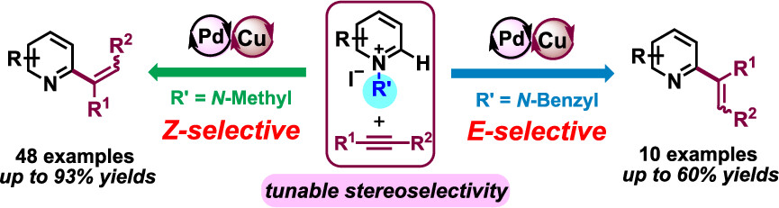 30. Li, W.; Tang, J.; Li, S.; Zheng, X.; Yuan, M.; Xu, B.; Jiang, W.; F, H. *; Li, R.; Chen, H.*, Stereodivergent Synthesis of Alkenylpyridines via Pd/Cu Catalyzed C-H Alkenylation of Pyridinium Salts with Alkynes. Org.Lett. 2020, 22(20), 7814-7819;