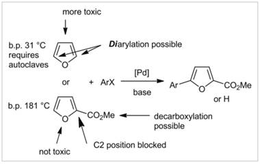 57. Fu, H.; Doucet, H., Methyl 2-Furoate: An Alternative Reagent to Furan for Palladium-Catalysed Direct Arylation. Eur.J.Org.Chem. 2011, (35), 7163-7173.
