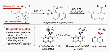 19. F+ Reagent-Promoted Pd-Catalyzed C7−H Arylation of 1-Naphthamides.