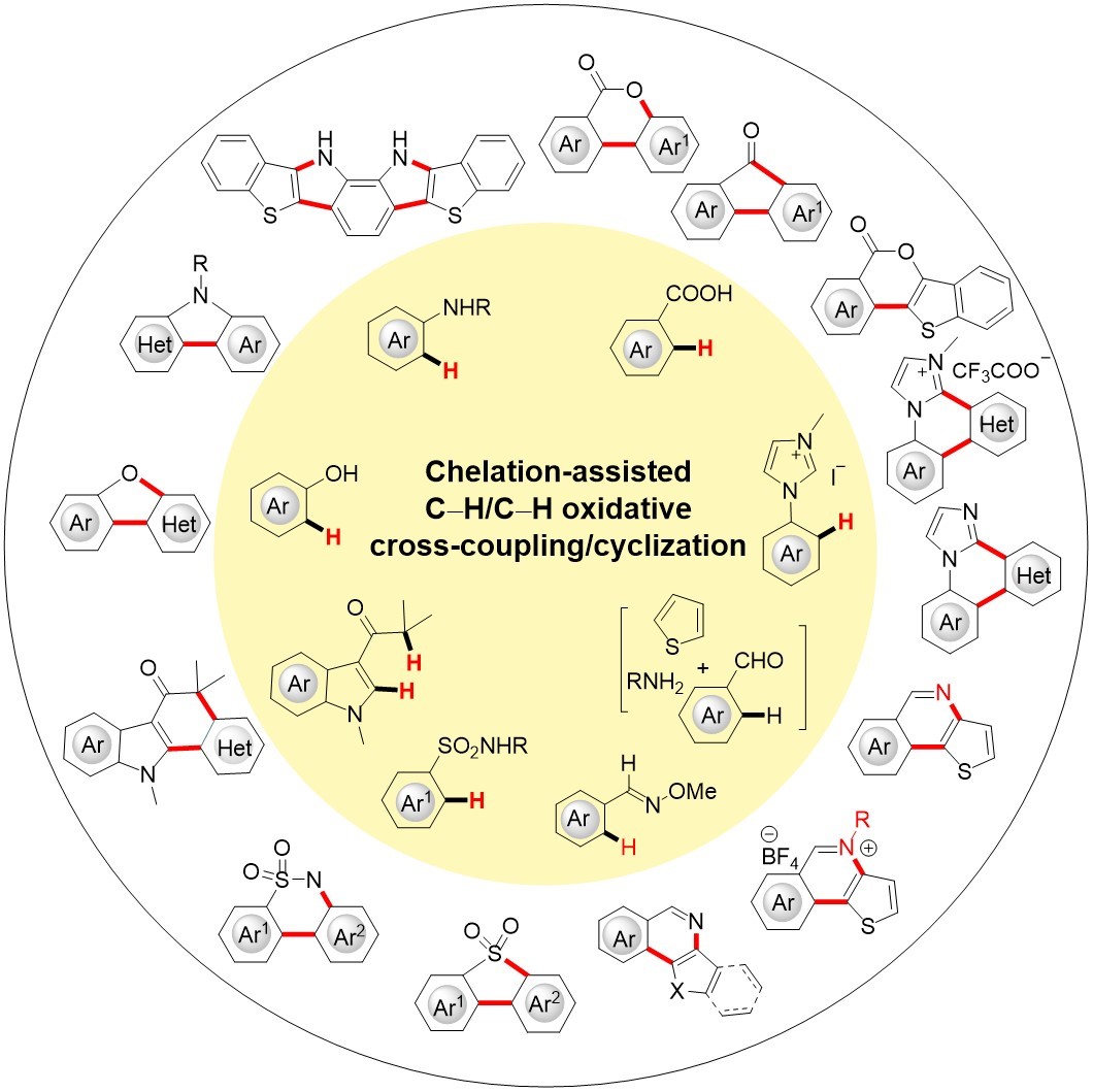 13. 基于螯合导向C–H/C–H氧化交叉偶联/环化反应策略构筑稠杂芳烃化合物.(黄乃正先生七十周岁庆祝专辑)